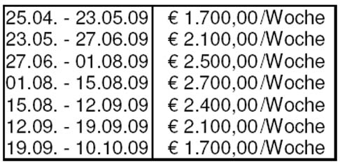 Skipper: € 840,-/Woche extra!